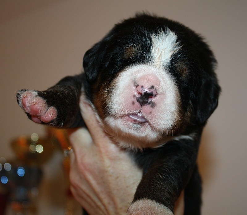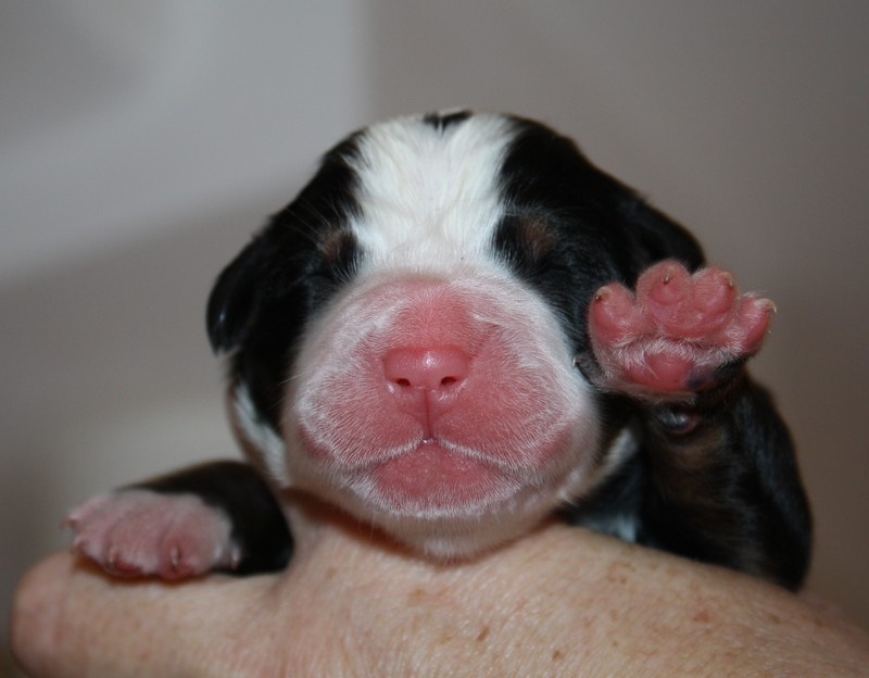 Je suis né le second, 660 grs à la naissance, à une semaine 1.260 kg, à 2 semaines 1.940 kg, à 3 semaines 2.850 kg, à un mois 3.850 kg, à 5 semaines 5.070 kg à 6 semaines 6.730 kg à 7 semaines 8.280 kg à 8 semaines 9.480 kg
